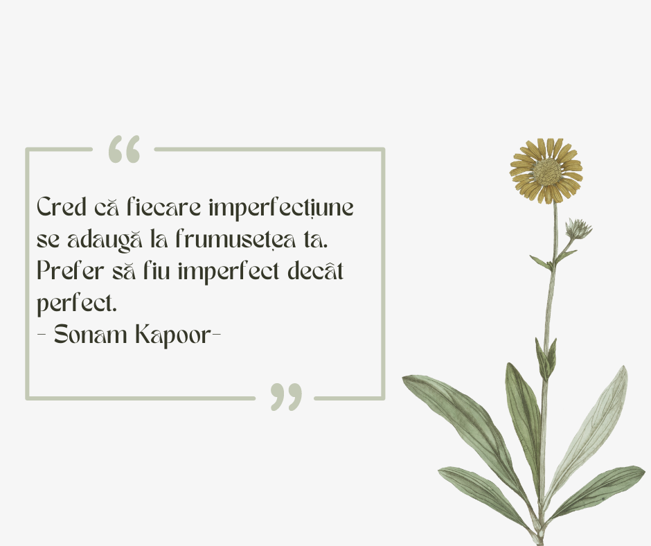 Imperfecțiunea înseamnă AUTENTICITATE, amprenta ta personală, înseamnă să dai șansa ca abilitățile și aptitudinile tale UNICE să fie cunoscute și să dea VALOARE vieții tale și celor din jur. Imperfecțiunea înseamnă a fii TU.