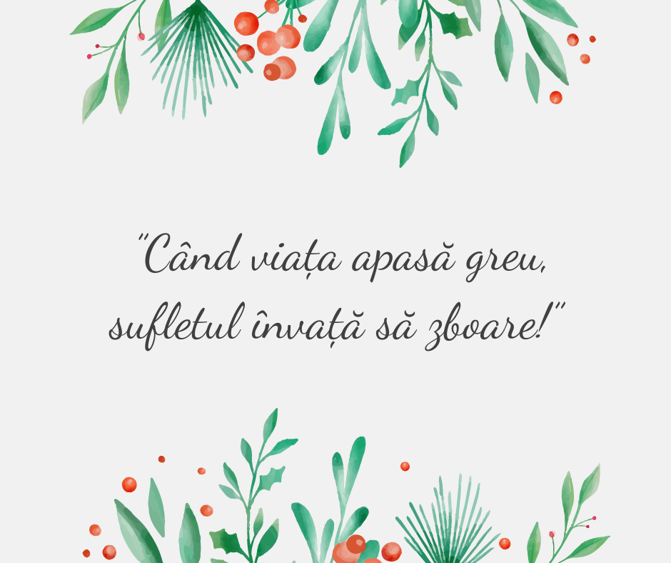 Viața nu este despre a fi mereu fericiți, ci despre a învăța să găsim lumina chiar și în întuneric. Atunci sufletul renaște mai blând, mai înțelept , mai viu. Așa că data viitoare când simțiți că nu mai puteți, amintiți-vă asta: nu e sfârșitul, e doar o etapă. Pentru că: atunci când viața apasă greu, sufletul nu se rupe – el învață să zboare!